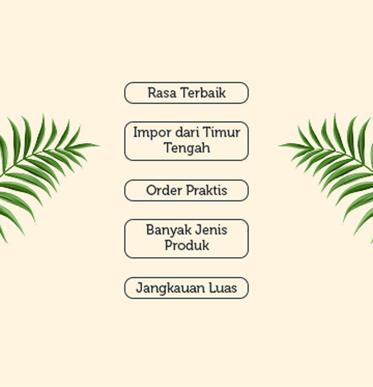 Merupakan toko oleh-oleh yang diimpor langsung dari Timur Tengah. Salah satu produk terbaik kami adalah kurma yang terdiri dari berbagai jenis, baik basah hingga kering, serta kurma dengan berbagai ukuran.